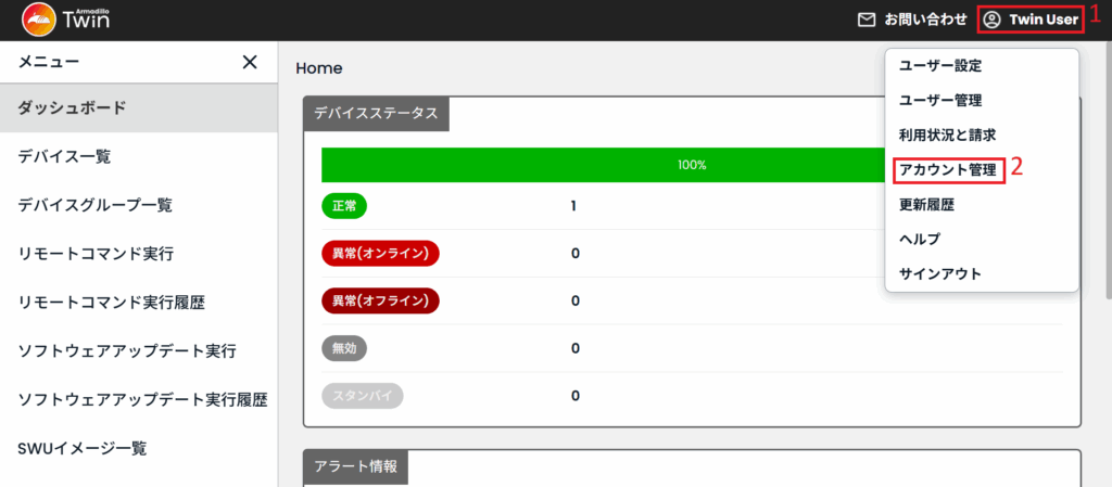 - Armadillo Twin 上で「デバイス一覧」に移動します