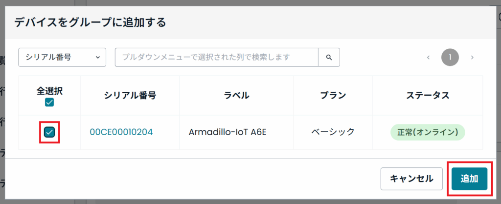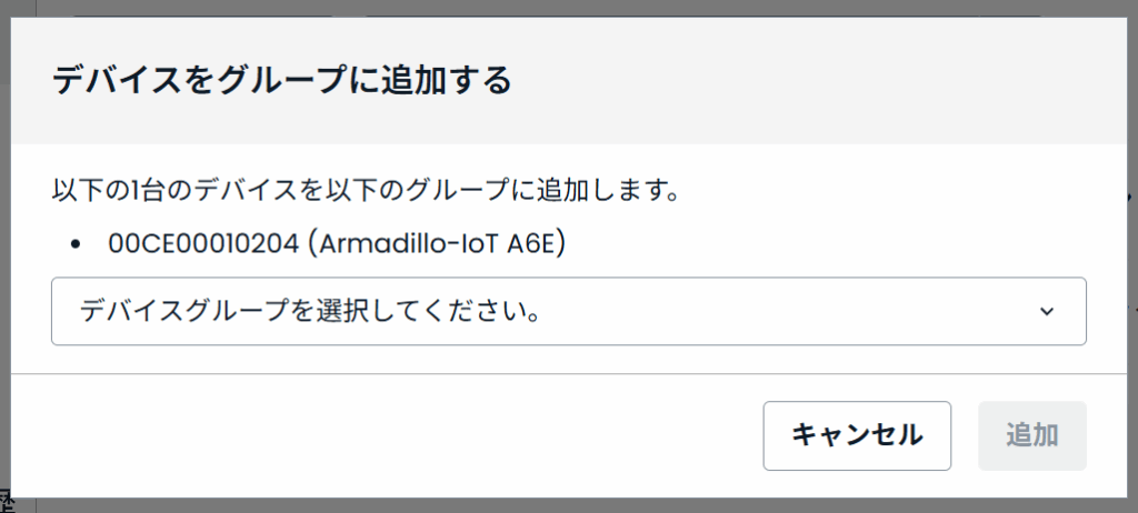 - 追加するデバイスを確認し、デバイスグループを選択して追加します。成功するとメッセージが表示されます
