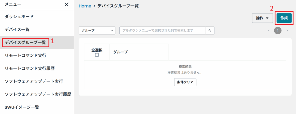 - デバイスグループ管理操作を行うためには、操作を行うユーザーに「デバイスグループ管理」権限が必要です