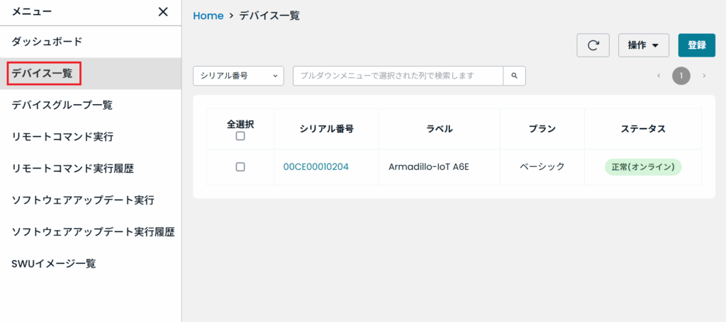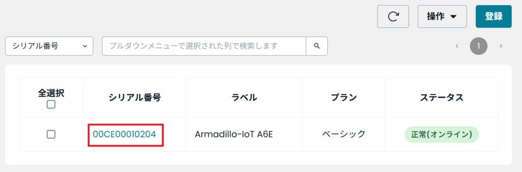 「デバイス一覧」から詳細情報を表示したいデバイスの シリアル番号 をクリックすると、そのデバイスの詳細情報を確認することができます。