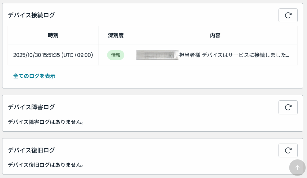 | デバイス復旧ログ | デバイスの異常状態からの復帰や、デバイスの接続を通知するログ |