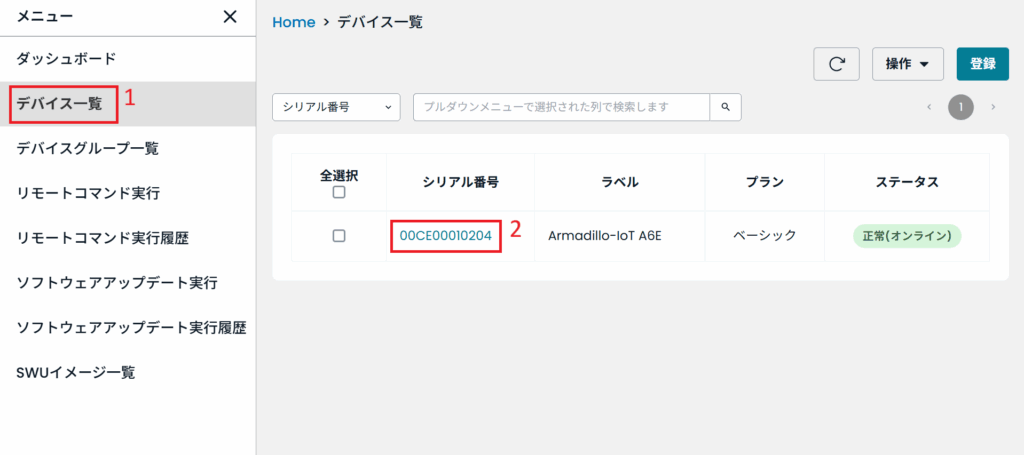- 対象デバイスの Armadillo Twin への登録がまだお済みでなければ 「Armadillo Twin にデバイスを登録する」の手順に従ってサービスに接続するデバイスを Armadillo Twin に登録してください