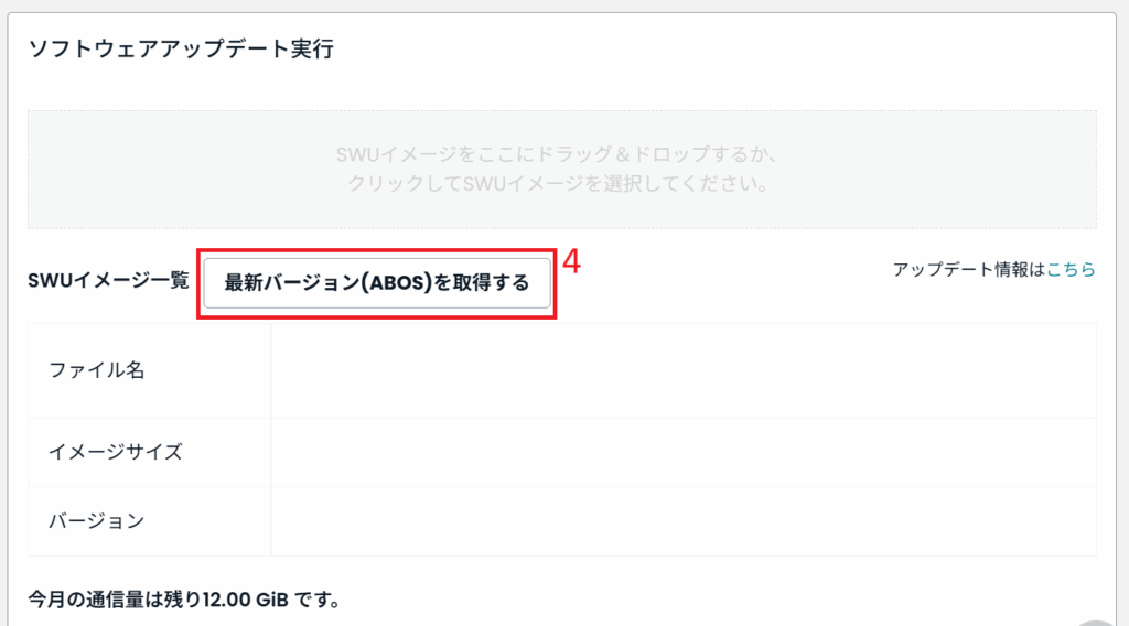 - 「最新バージョン(ABOS)を取得する」ボタンをクリックします