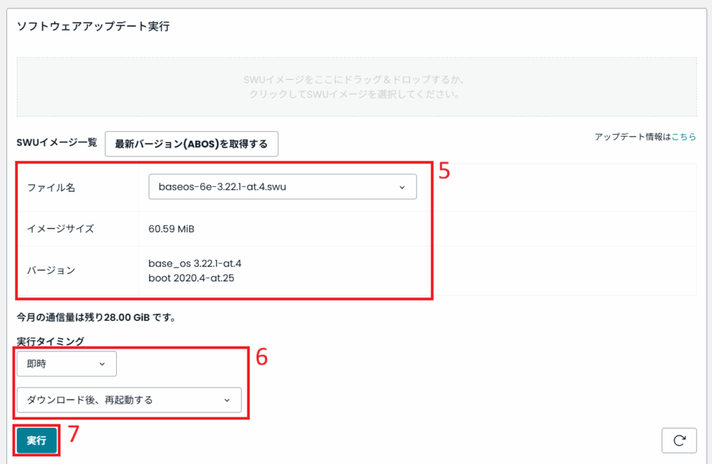 - イメージサイズやバージョンを確認し、問題なければ「実行」ボタンをクリックしてアップデートを開始します